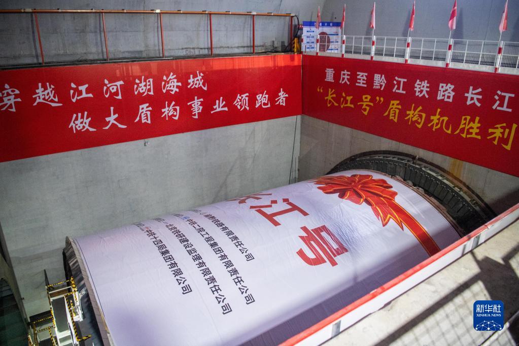 6月16日,重慶至黔江鐵路長江隧道“長江號”盾構機正在進行掘進作業。