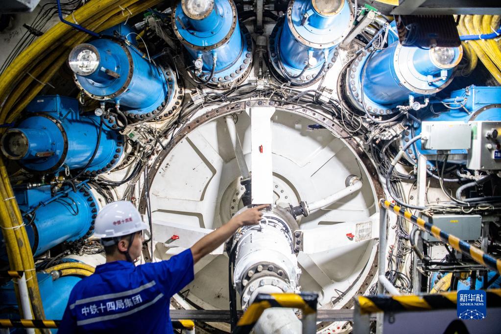 6月16日,工作人員在檢查“長江號”盾構機運行情況。