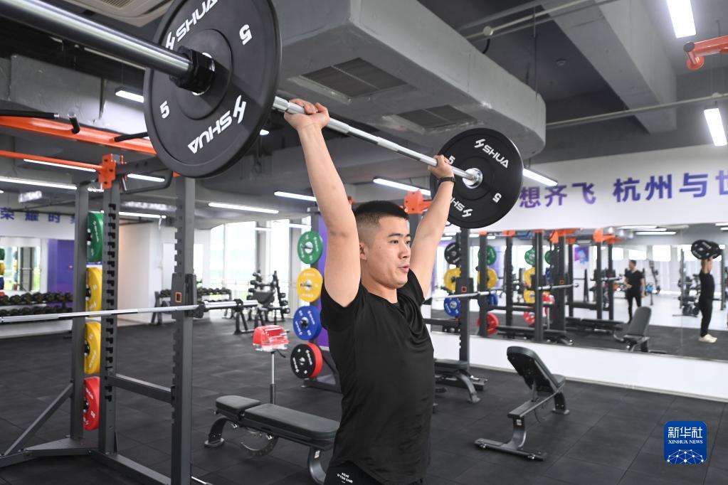 6月16日,杭州亞運村健身中心健身教練在綜合器械區展示。據了解,健身中心集合了營養管理、體能康復、疲勞恢復、運動心理等各領域的專業教練,將根據運動員實際情況,為運動員提供賽事服務保障。