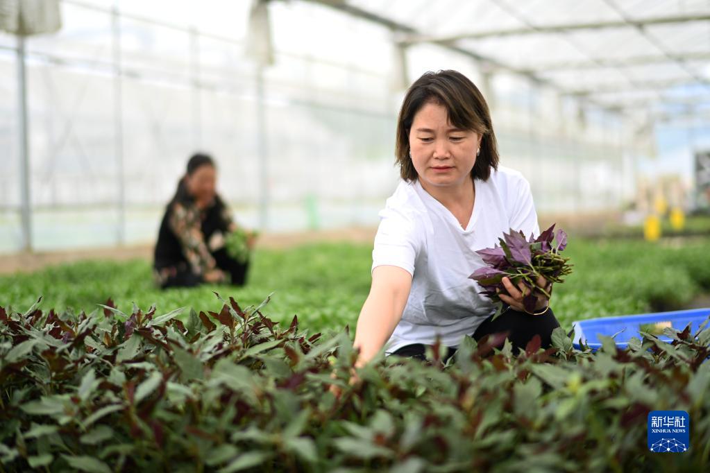6月16日,村民在貴州省黔東南苗族侗族自治州黃平縣舊州鎮野菜種植基地采收野菜紫背天葵。