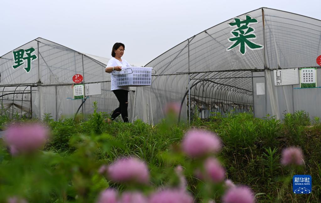 6月16日,村民在貴州省黔東南苗族侗族自治州黃平縣舊州鎮野菜種植基地搬運野菜。