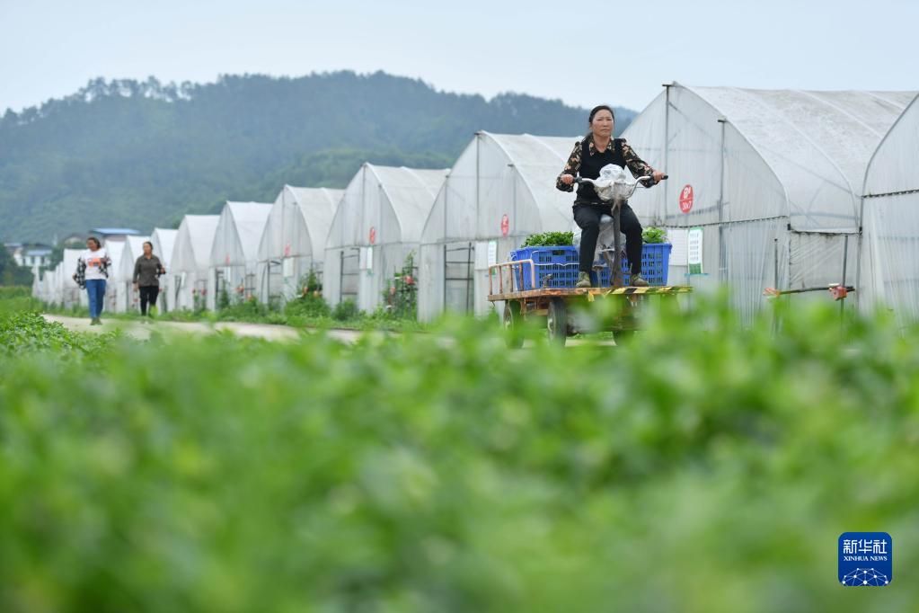 6月16日,村民在貴州省黔東南苗族侗族自治州黃平縣舊州鎮野菜種植基地運野菜。