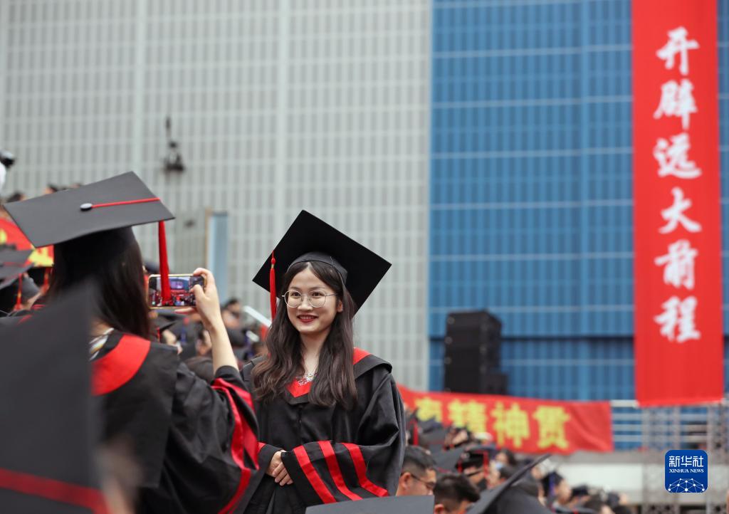 6月16日,在復旦大學2023屆研究生畢業典禮前,學生們在留影。