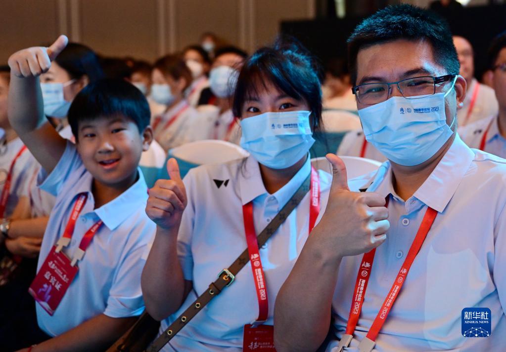 6月16日,曾崇信(右一)一家三口受邀參加在廈門舉行的第二十一屆海峽青年論壇開幕式。