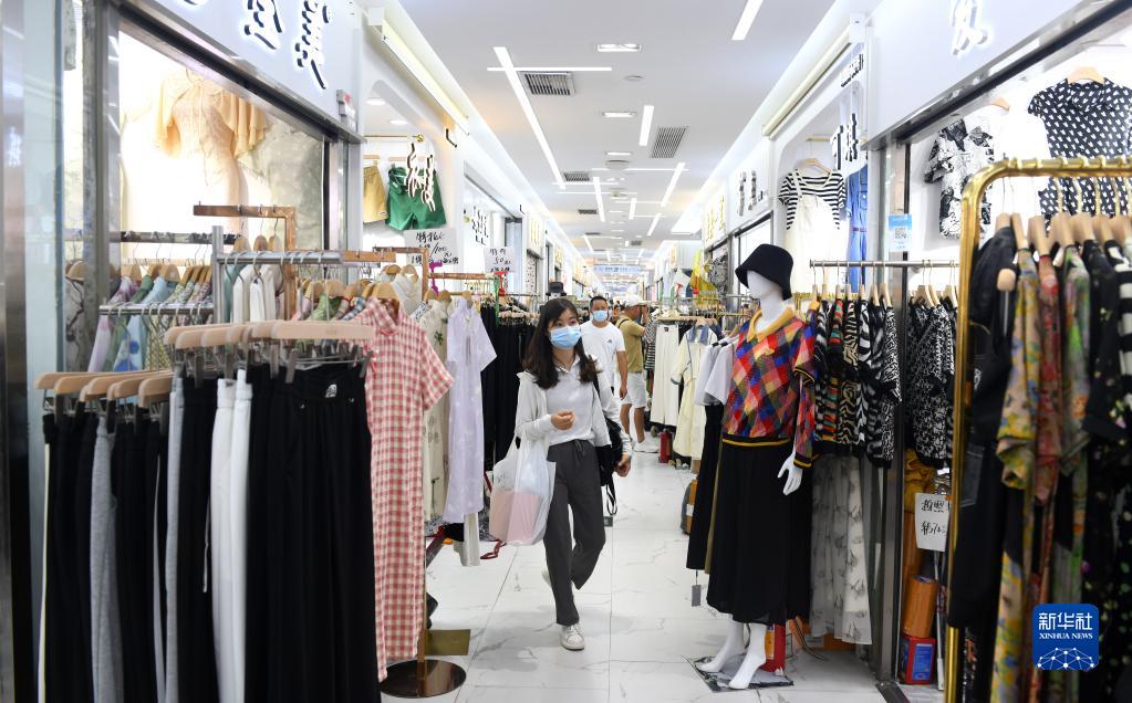 客商在廣州市十三行廣場里選購服裝(6月13日攝)。