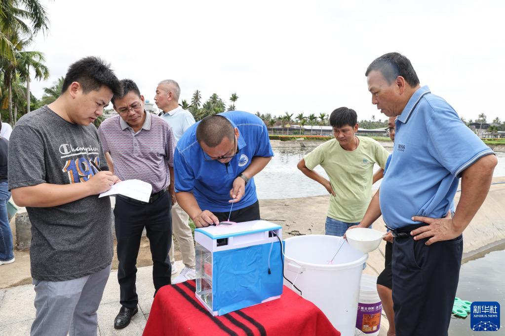 6月16日,在海南省海洋與漁業科學院瓊海長坡科研基地,工作人員測量波紋唇魚幼魚的體長、體高。