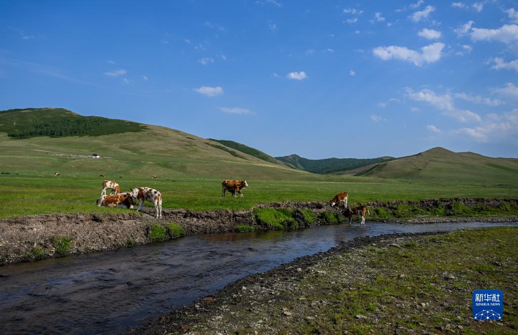 6月16日,在阿魯科爾沁旗巴彥溫都爾蘇木渾都倫游牧區,牲畜在草原上覓食。