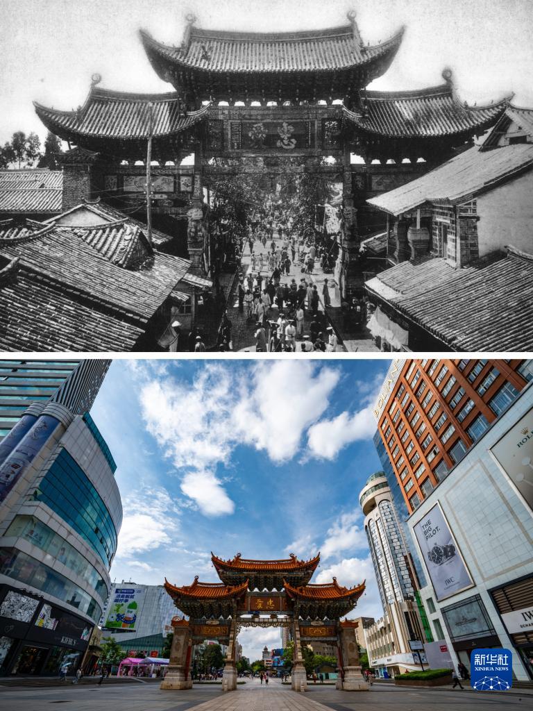 下圖為1999年重建的忠愛坊(6月15日攝)。忠愛坊始建于明朝,為紀念元代云南行省平章政事賽典赤·瞻思丁治滇有功而建,歷經數度毀壞又數次重建。新華社記者江文耀攝
