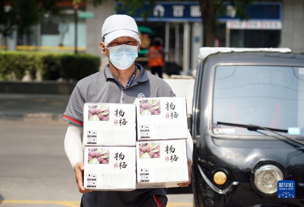 6月17日,順豐速運快遞員楊敬山在北京市海淀區中關村街道中關村南五街附近送快件。