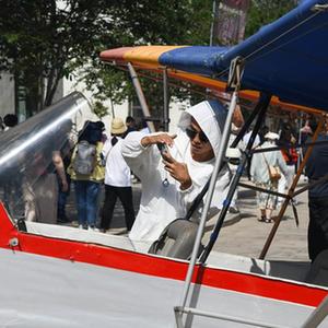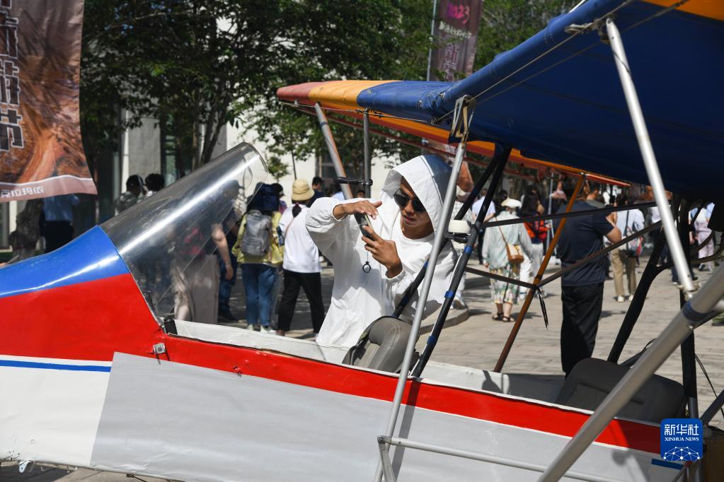 6月17日,在特種旅游節開幕式上,游客在拍攝展出的飛機。