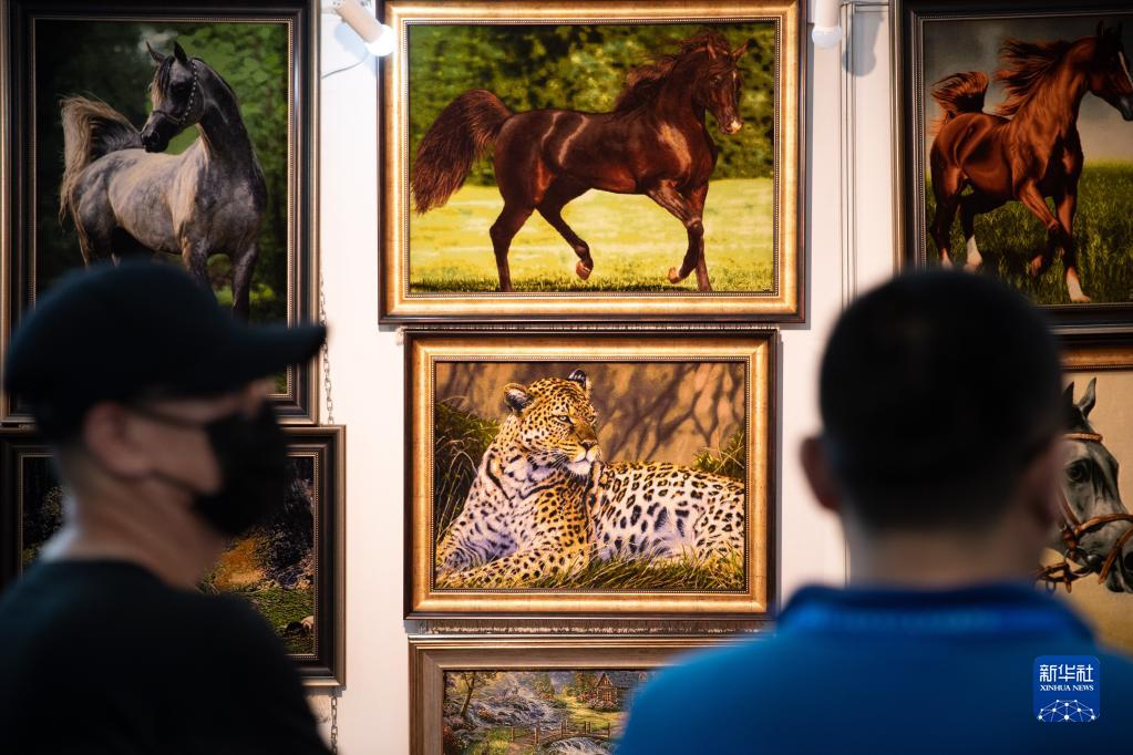 6月16日,人們在伊朗展區欣賞藝術作品。