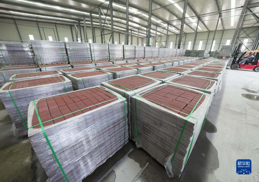 6月17日,工人在秦皇島市撫寧區一家新型路面材料企業的成品車間工作。
