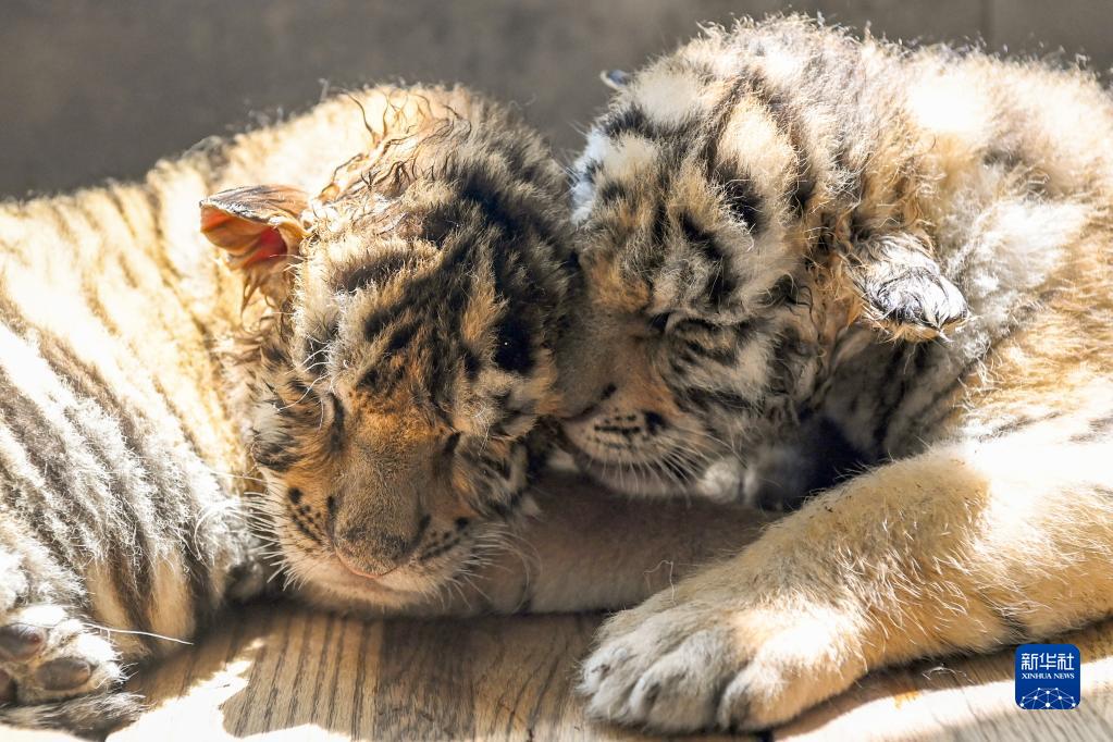 6月13日在黑龍江東北虎林園的虎舍中拍攝的東北虎幼崽。