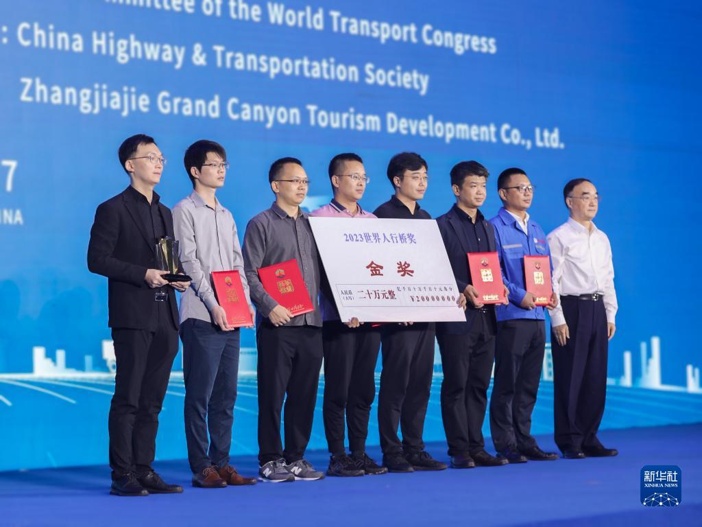 6月17日,海心橋設計團隊在2023世界交通運輸大會上領取2023“世界人行橋獎”金獎。