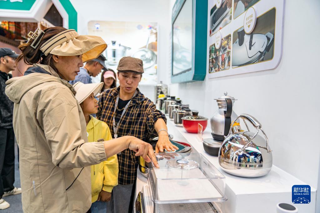 6月17日,工作人員在第五屆藏博會現場為參觀者介紹產品。