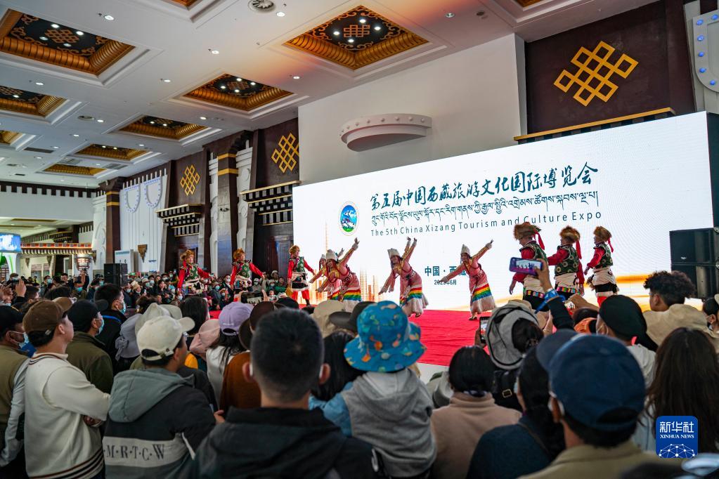6月17日,觀眾在觀看第五屆藏博會現場表演的節目。