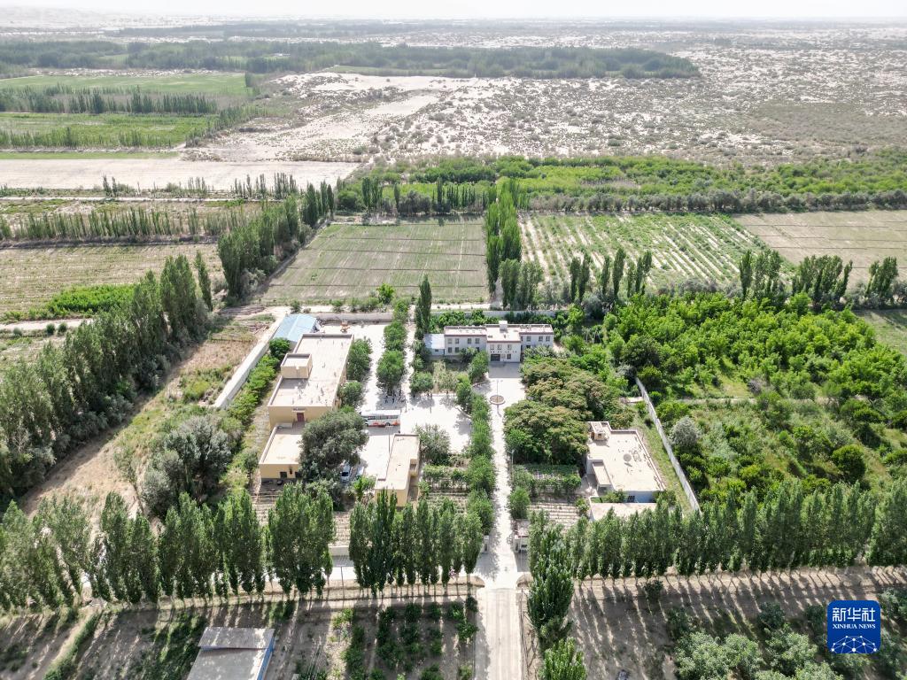 6月12日拍攝的位于新疆策勒縣的中科院新疆生態與地理研究所策勒沙漠研究站(無人機照片)。