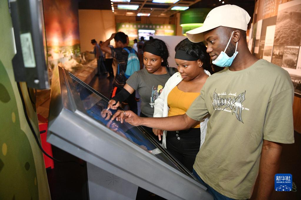 6月16日,留學生在寧夏靈武市全國防沙治沙展覽館參觀。新華社記者 王鵬 攝