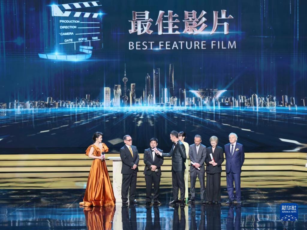 6月17日,獲得金爵獎最佳影片的《658公里、陽子的旅途》劇組上臺領獎。