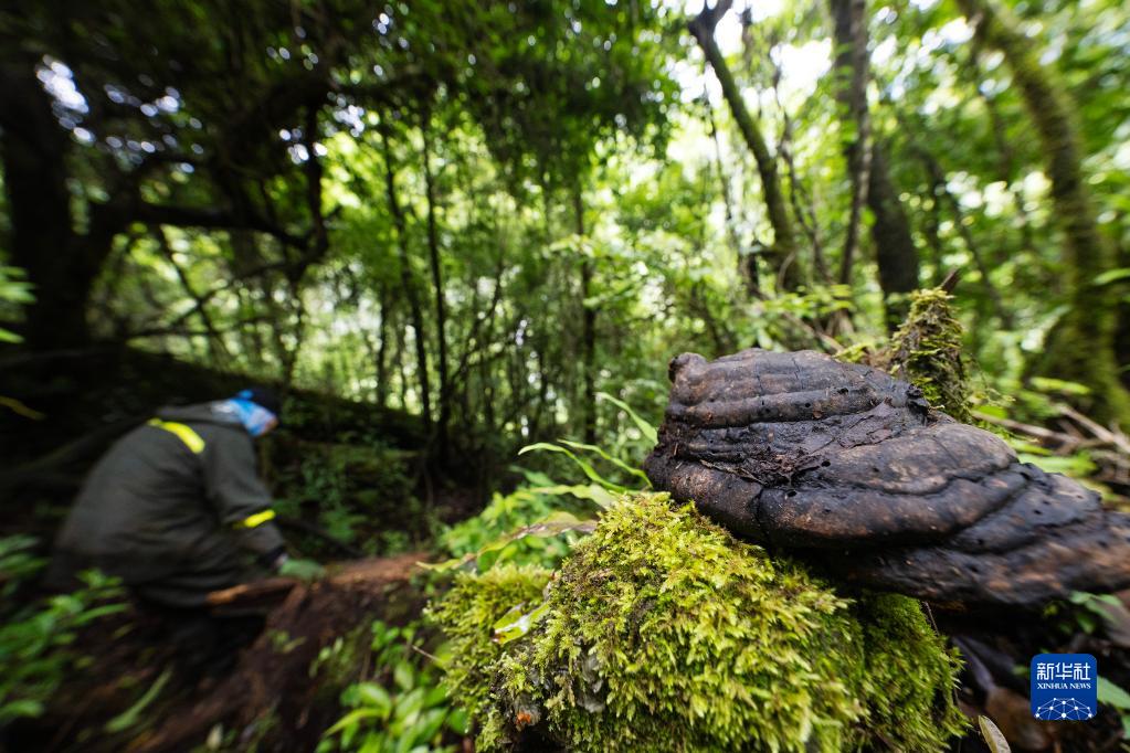 6月15日,在尋找亞洲第一高樹的路上發現的靈芝。新華社記者 費茂華 攝