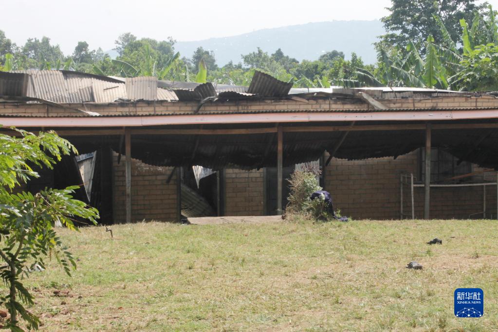 這是6月17日在烏干達西部卡塞塞地區拍攝的遭到襲擊的盧比里拉中學。
