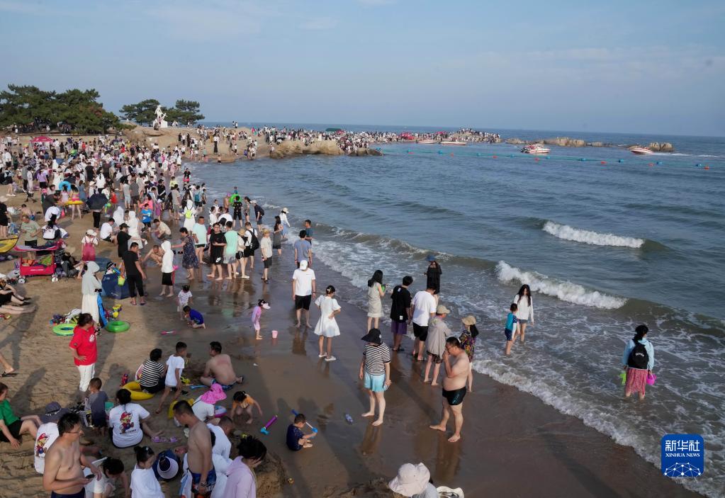 近日,部分省市遭遇高溫天氣,大批游客來到避暑勝地——河北省秦皇島市北戴河區,在各個景區、浴場休閑避暑。