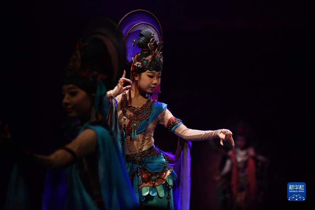 演員在大型洞窟式沉浸體驗劇《樂動敦煌》中表演(6月17日攝)。