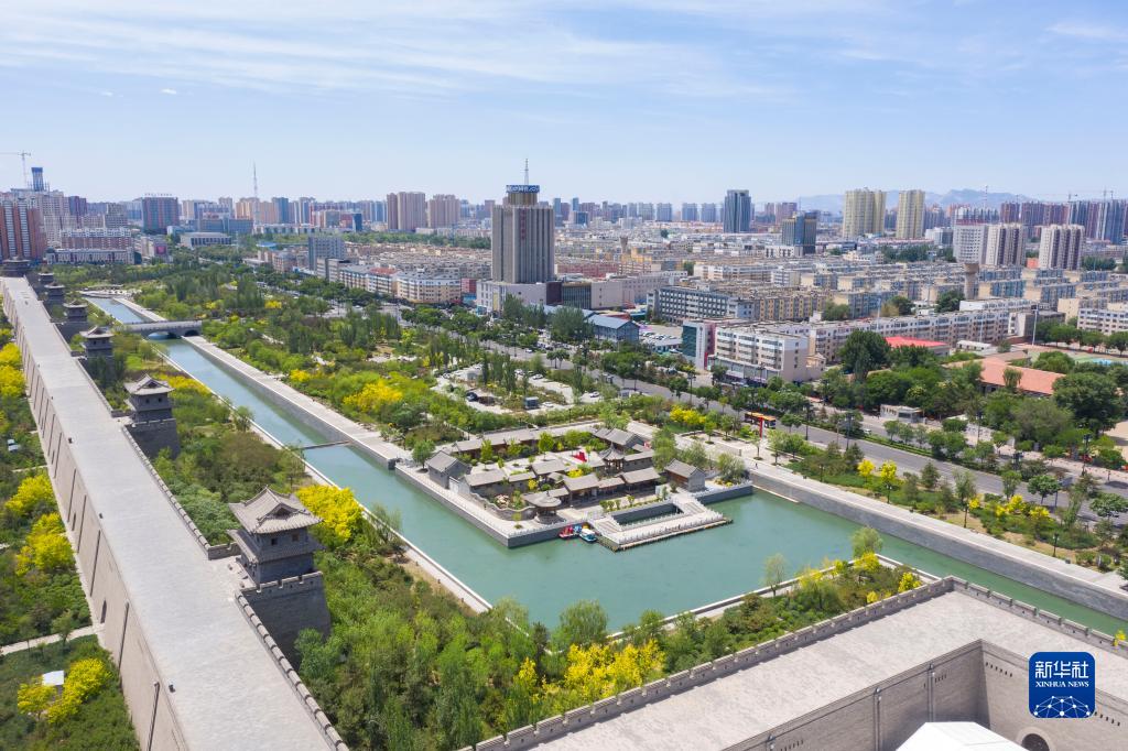 大同古城和城市街景相映成景(2023年6月8日攝,無人機照片)。