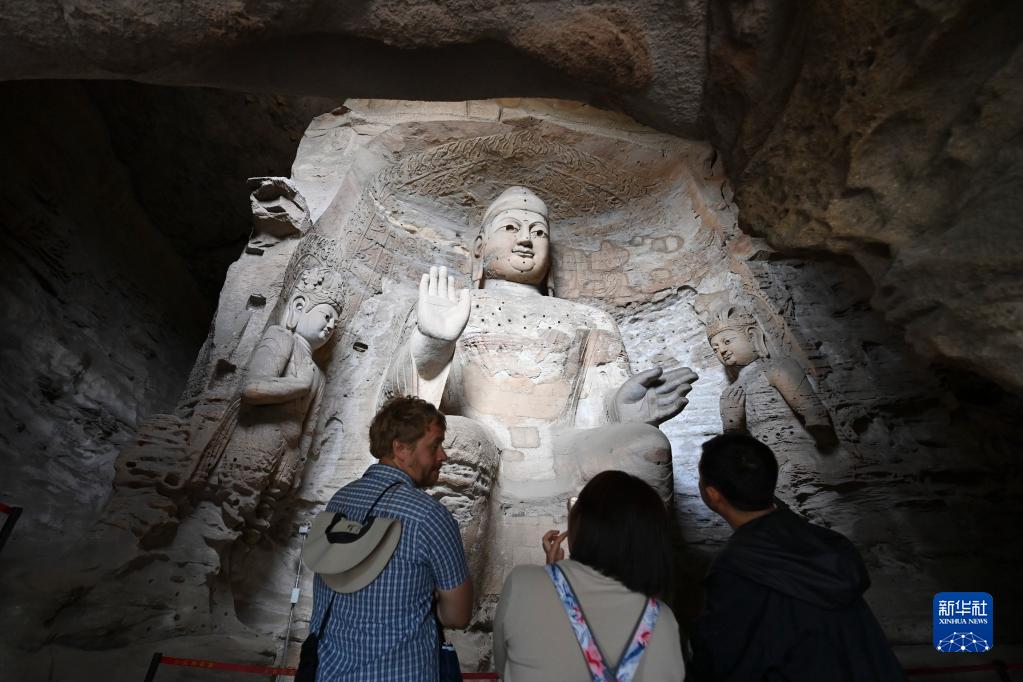 游客在云岡石窟參觀(2023年6月7日攝)。