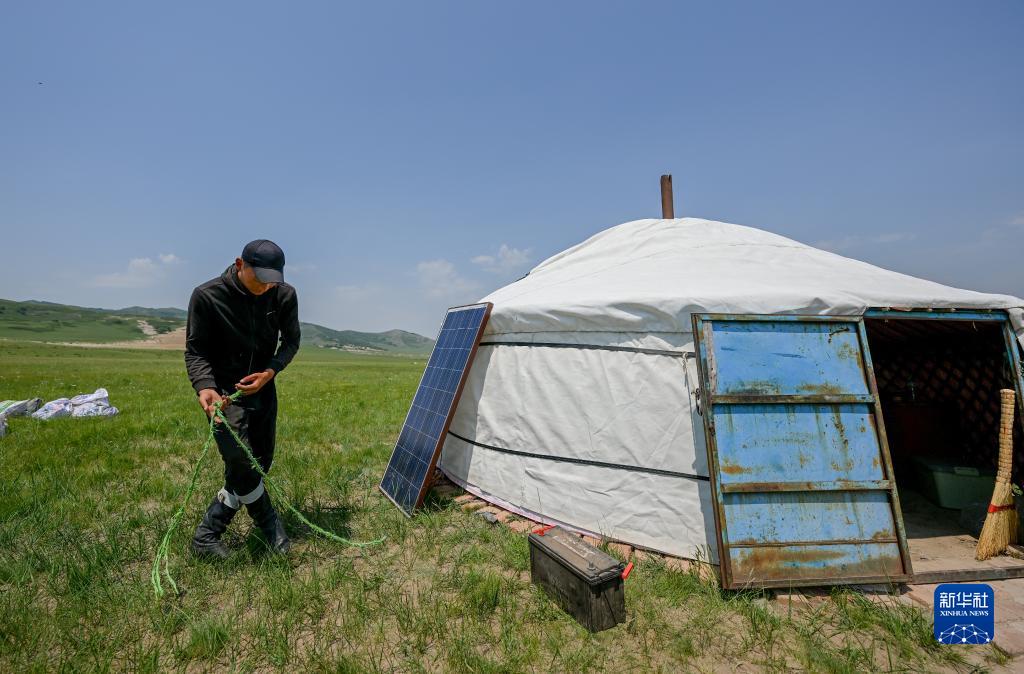 額爾敦巴特爾家的夏營地位于渾都倫游牧區,西接錫林郭勒大草原,南連大興安嶺南麓,綠草如茵,氣候涼爽。抵達夏營地后,一家人在周圍其他轉場牧民的幫助下搭建起氈房,開始了為期三個月的夏季放牧時光。
