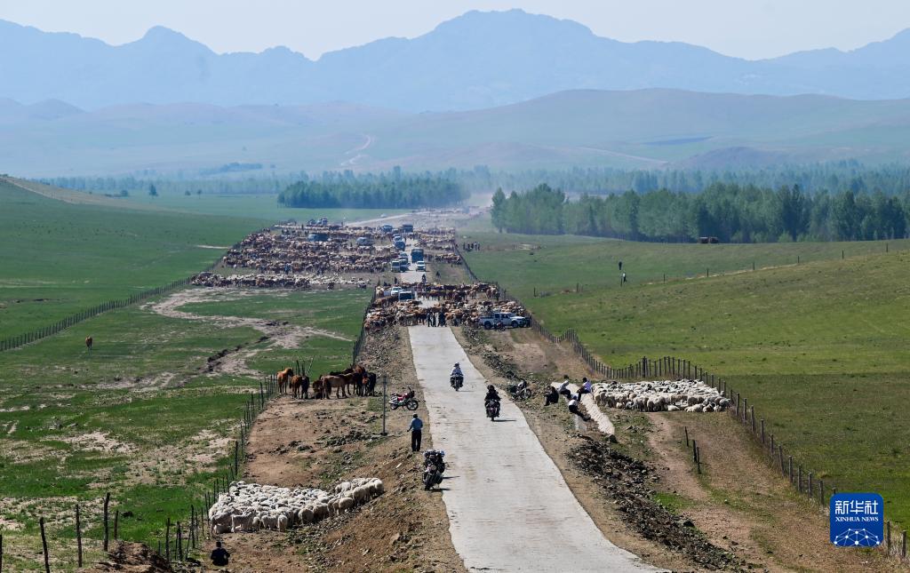 6月15日,內蒙古赤峰市阿魯科爾沁旗2000余戶牧民趕著14.6萬頭牲畜從定居點出發,前往水草豐美的夏營地進行轉場。這是當地牧民一直延續下來的沿河遷徙、逐水草而居的游牧傳統。
