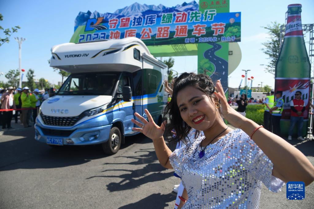 這是6月18日在新疆克拉瑪依市獨山子區獨庫大本營廣場拍攝的獨庫公路通車節現場。