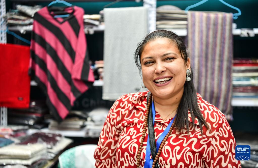這是展會上的尼泊爾商人(6月18日攝)。