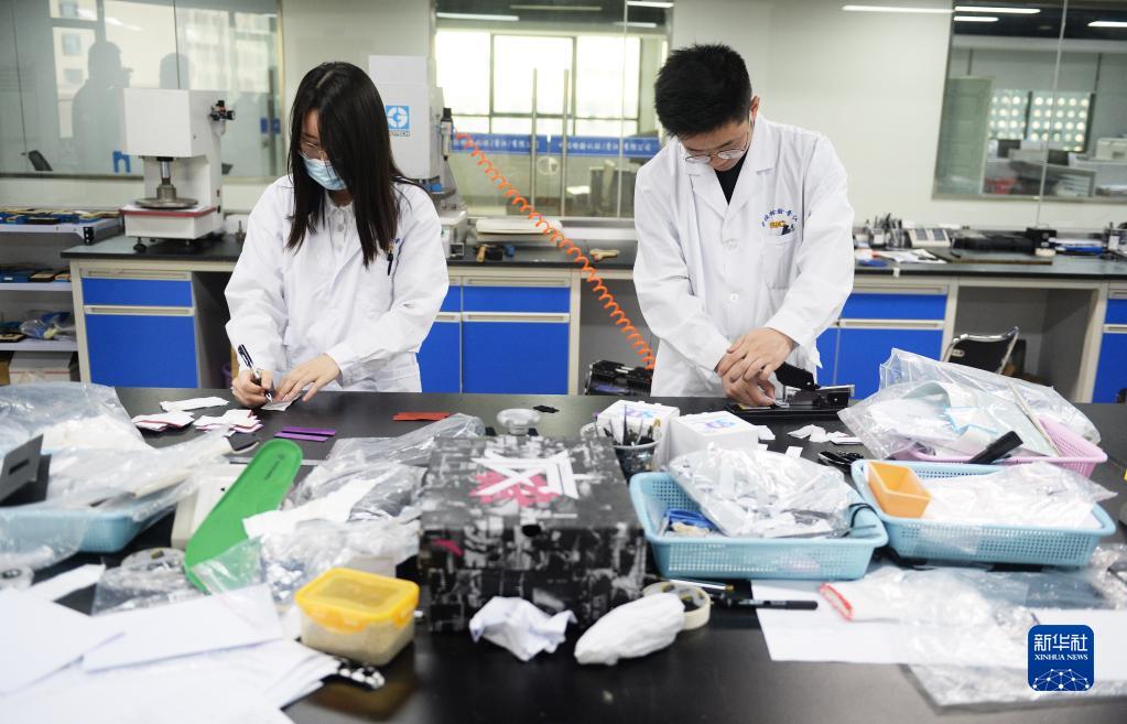 6月18日,中國皮革和制鞋工業研究院(晉江)有限公司科研人員在實驗室制樣。