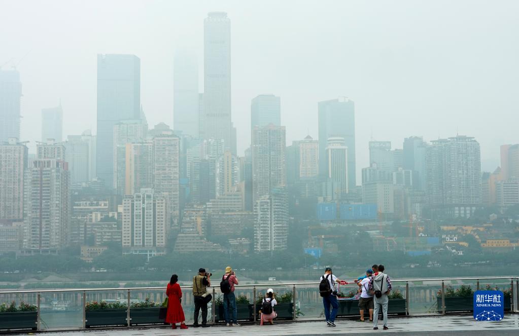 6月18日,參加活動的攝影愛好者在重慶南岸區南濱路上的重慶開埠遺址公園觀景臺拍攝城市風光。