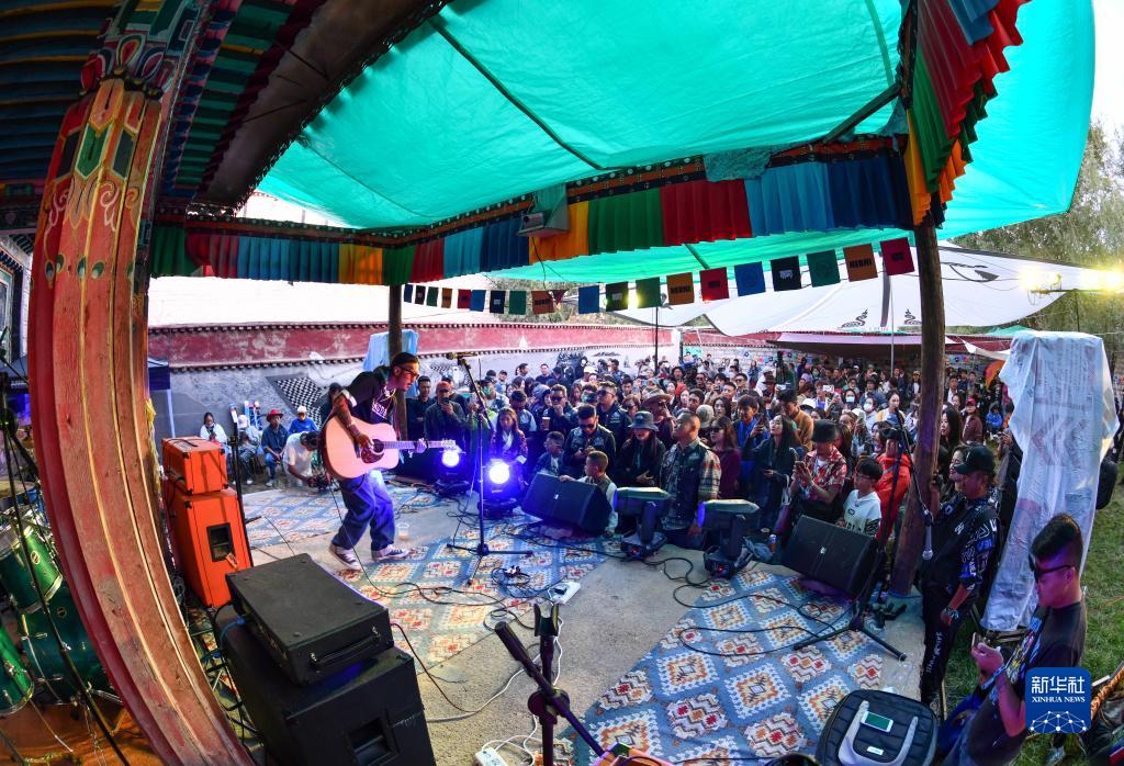 拉薩的年輕人在參加現場音樂會(2022年7月29日攝)。