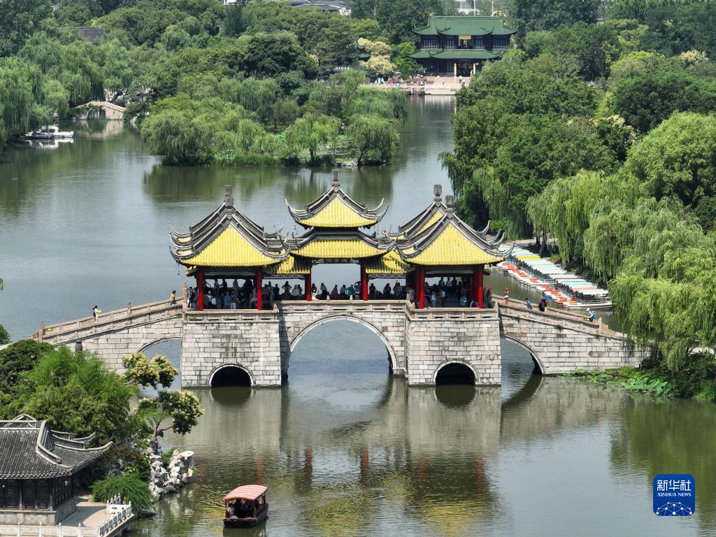 揚州瘦西湖五亭橋(6月15日攝,無人機照片)。