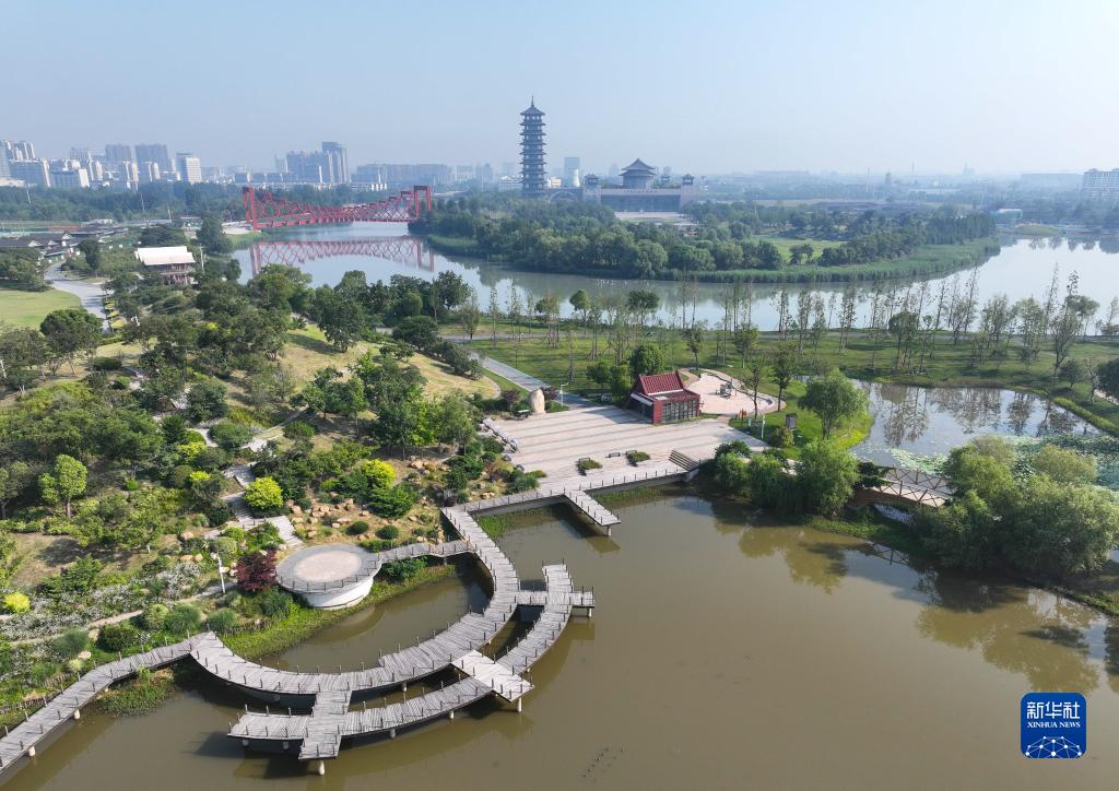 揚州運河三灣風景區景色(6月15日攝,無人機照片)。