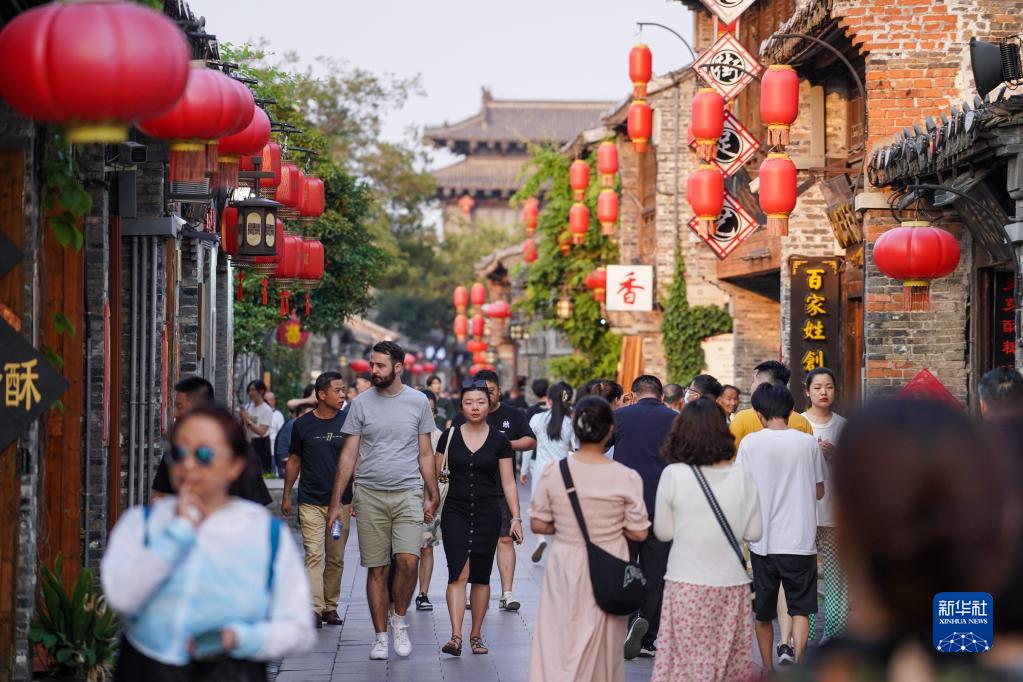 游客在揚州東關街休閑游玩(6月14日攝)。