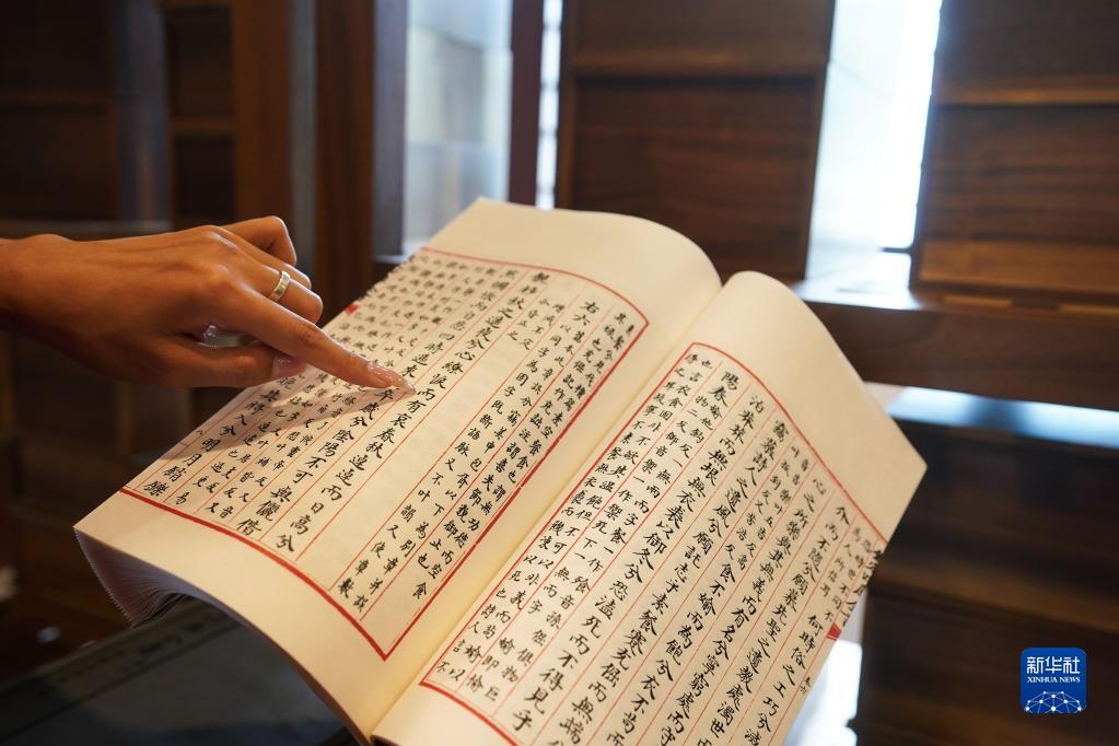 工作人員在揚州文匯閣內展示《四庫全書》(6月15日攝)。