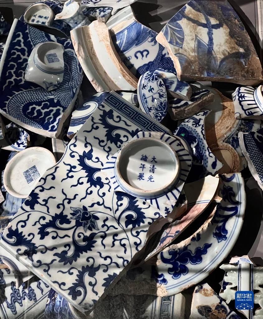 這是景德鎮御窯博物館內展出的古瓷片(5月16日攝)。