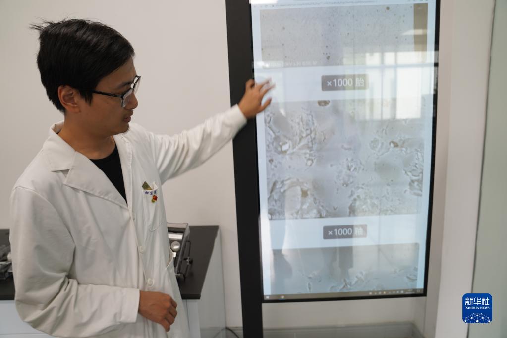在景德鎮御窯博物院,工作人員在展示瓷片標本的配方研究數據(5月16日攝)。
