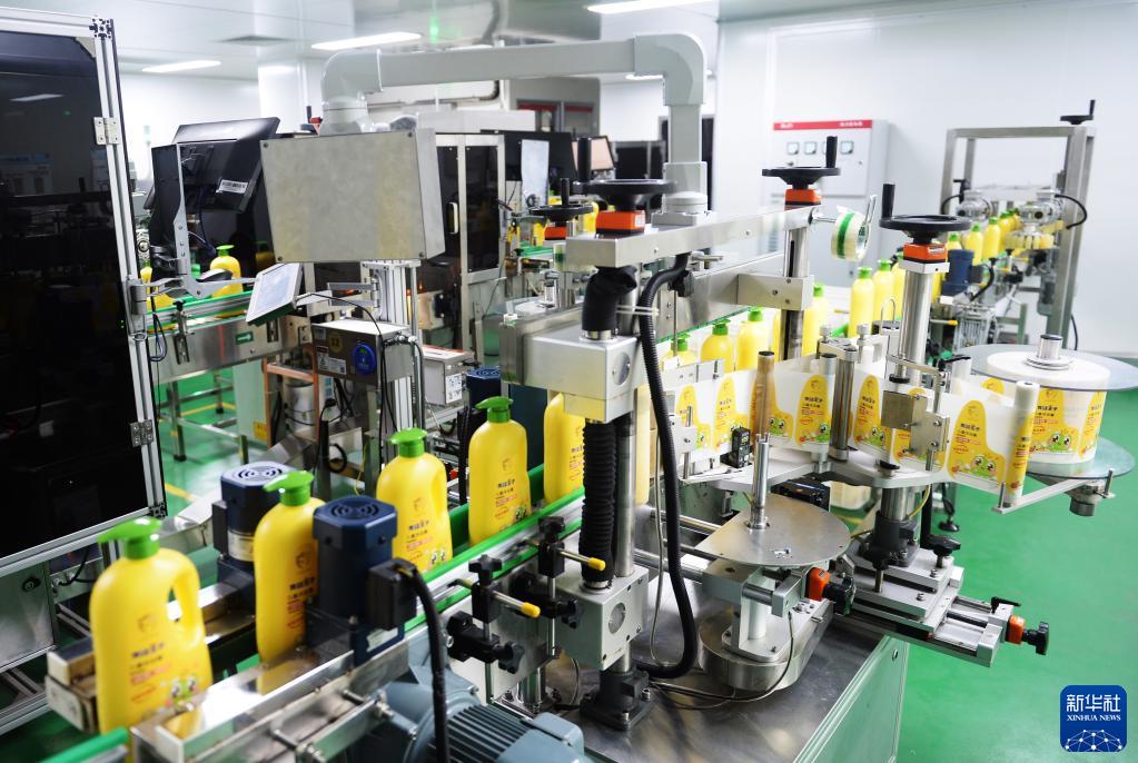 6月18日在位于福建漳州的青蛙王子集團拍攝的洗護工廠智能化車間生產線。