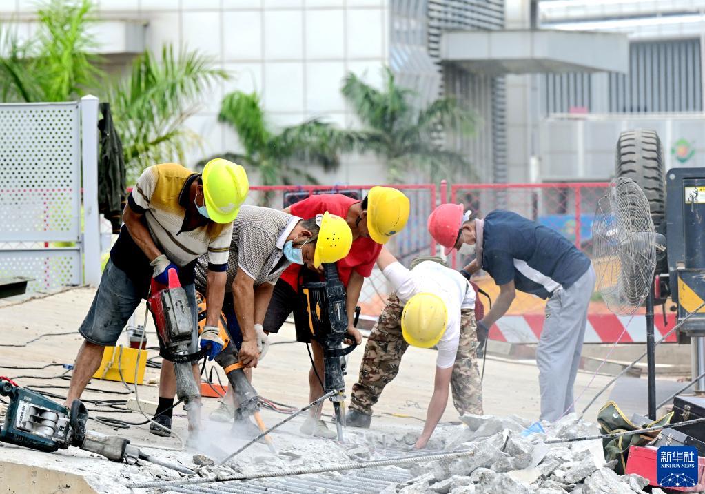 6月19日,工人在福廈高鐵新建廈門北站出發樓層施工。