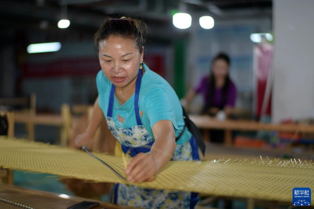 6月19日,村民在貴州省劍河縣幸福社區幫扶車間加工藤編制品。