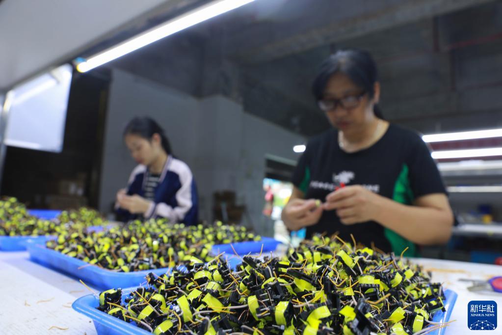 6月19日,村民在貴州省劍河縣思源社區幫扶車間加工微型變壓器。