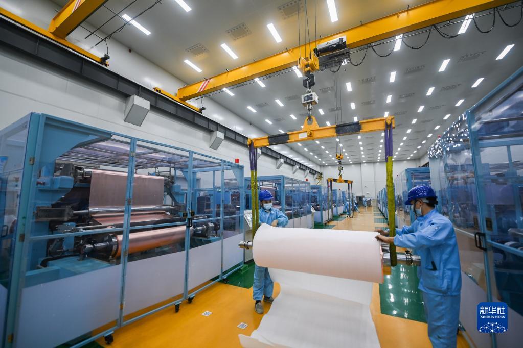 6月19日,在位于東陽市南馬鎮花園村的浙江花園新能源股份有限公司生產車間,工人在生產高性能銅箔產品。