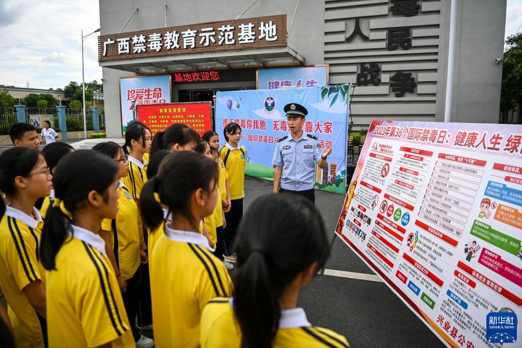 在第36個國際禁毒日來臨前,廣西興業縣禁毒整治辦聯合教育局、公安局在位于該縣城區的廣西禁毒教育示范基地對學校師生開展禁毒宣傳活動,增強廣大師生們的識毒、防毒、拒毒意識。