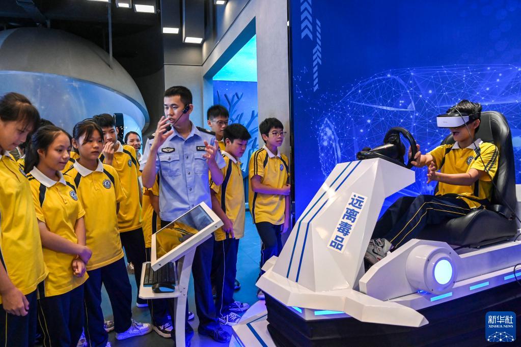 6月19日,在廣西禁毒教育示范基地,民警為學生們講解毒駕的危害。