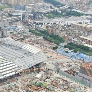 這是6月19日拍攝的建設中的廣州白云火車站(無人機照片)。